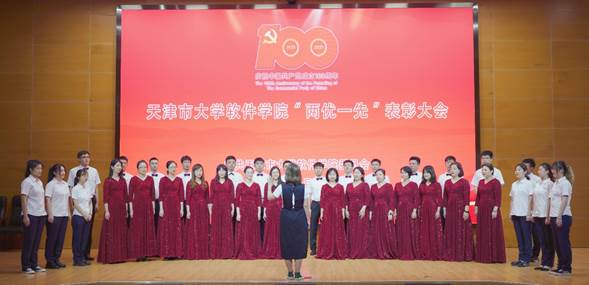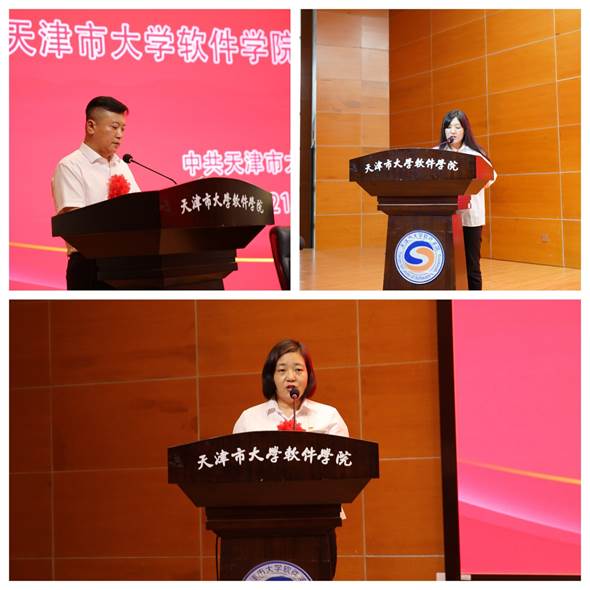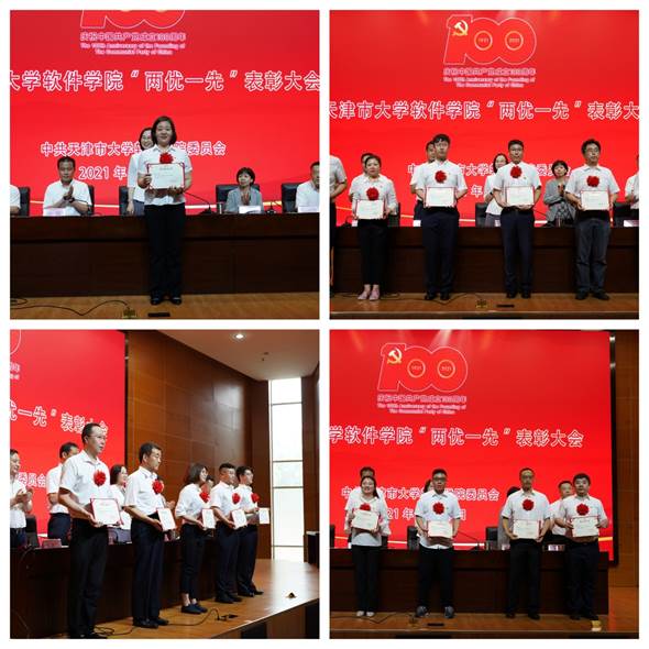 今年,2021年,是中国共产党成立100周年,也是“十四五”规划的开局之年。学院党委坚持以习近平新时代中国特色社会主义思想为指导,深入学习贯彻党的十九大和十九届二中、三中、四中、五中全会精神,以落实立德树人为根本任务,团结带领师生员工坚持创新驱动发展、强化内涵建设,管党治党工作水平持续提升,办学治校能力不断增强。6月29日,学院召开“两优一先”表彰大会。学院党委副书记、院长张桂华,副院长周晓丰、高翔,纪委书记张洺涛,党委委员张建勇,全体教职员工、协同育人企业(临时)党支部代表和学生党员代表参加大会。