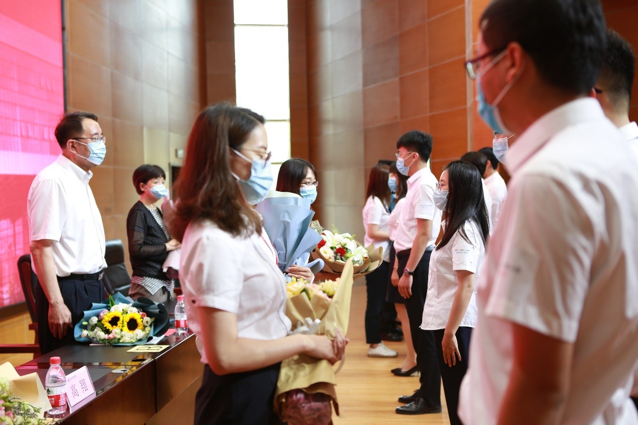 典礼上,毕业生代表还向班主任老师及基层服务人员代表进行了献礼,感谢所有教职工及基层服务人员辛勤的付出,祝愿所有教职员工桃李满天下。张丹迪同学家长作为代表,向学校表达了感谢,为毕业生们送上殷殷嘱托。