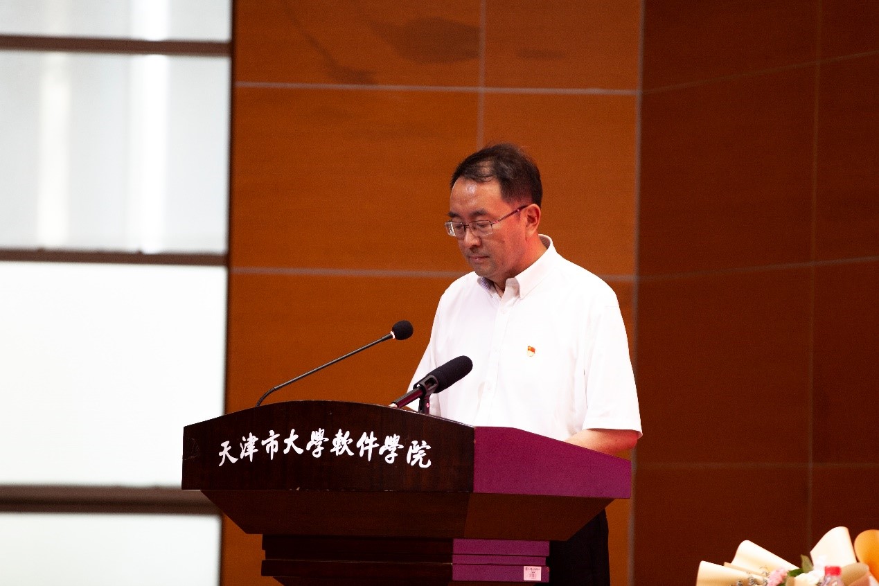 十洲书记代表学院致辞,向2020届全体毕业生表示热烈的祝贺,向所有辛勤付出的老师和家长们致以衷心的感谢。十洲书记指出,2020年是特殊的一年,来势汹汹的新冠肺炎疫情给全世界带来了前所未有的挑战。在党中央的坚强领导下,全国人民众志成城、全力以赴,取得了疫情防控的重大战略成果,汇聚了同抗疫情、风雨同舟的强大精神力量。疫情是一次重大的历史考验,也是一次重要的人生考验。在过去的几个月中,同学们积极面对升学就业压力,主动担当社会责任,以迎难而上的勇气和坚韧不拔的精神交出了精彩的答卷。离别在即,他从“砥砺前行,勇担时代责任;不懈奋斗,把握青春韶华;求知若渴,坚持终身学习;不忘初心,实现人生理想”四个方面寄语同学们,希望天软学子坚定、自信、从容出发,扬帆起航,乘风破浪,勇敢开创崭新的未来。