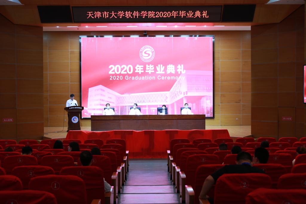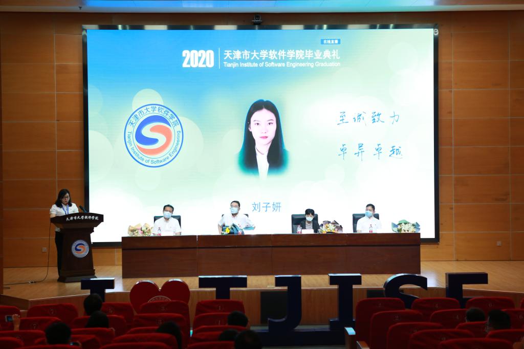 云端相聚,跨越山海,真情所系;致敬青春,感念过往,启航未来。6月28日上午,天津市大学软件学院2020届本科生毕业典礼在大报告厅隆重举行,典礼首次采取线上下线结合的方式进行。党委书记刘十洲,副院长周晓丰、高翔,党委委员张建勇出席典礼,与师生代表和云端在线观礼的同学、家长一起见证1070名毕业生顺利完成学业,开启全新人生旅程。典礼由学生工作部部长曹军主持。