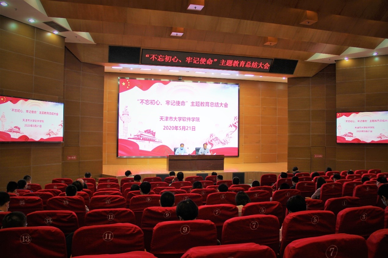5月21日,天津市大学软件学院“不忘初心、牢记使命”主题教育总结大会在大报告厅召开。市委第七巡回指导组副组长陈建国出席会议并讲话,市委教育工委、市教委宣传处四级调研员沈鑫,巡回指导组成员虞杨同志专程到会指导。院领导班子成员,全体中层干部,全体教工党员,协同育人企业(临时)党支部工程师党员代表、学生党员代表参加会议。我院副院长、无党派人士、市政协常务委员周晓丰受邀参会。