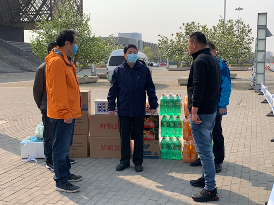 共舆而驰筑防线,同舟共济抗疫情。4月10日上午,学院副院长高翔率后勤与保卫部部长王岳等一行4人到天津工业大学校门口慰问一线的安检值守人员,为一线值守人员送上肉、蛋、油、饮料、蔬菜等慰问品。