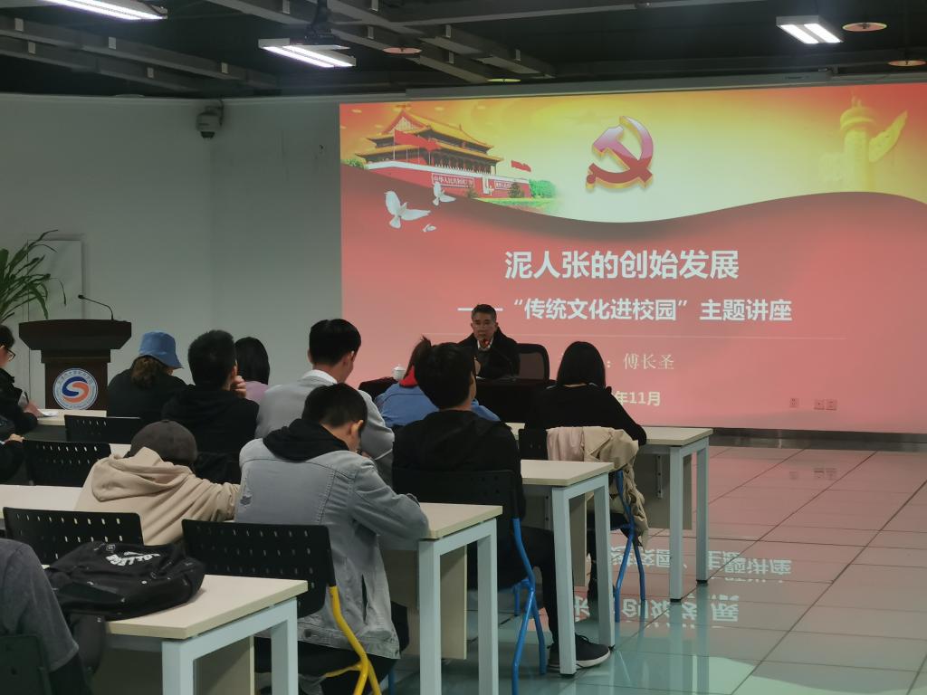 11月7日,天津市大学生中华优秀传统文化高校巡讲在我院举行,泥人张彩塑工作室主任傅长圣为我院师生作“泥人张的创始发展”主题讲座。学生工作部相关教师及2019级部分在校生参加活动。