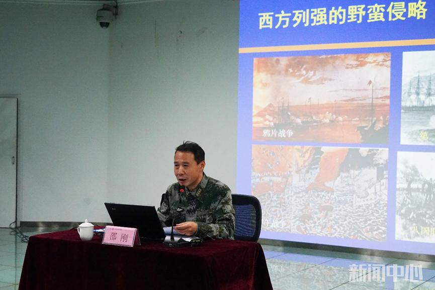 邵刚教授首先与师生一起观看了《厉害了,我的军》强军宣传片,战机战舰浩浩荡荡的震撼场面燃起了大家爱国爱军的激情。随后,邵刚教授通过对习近平强军思想“十个明确”的解读,从强国必须强军是对历史规律的科学总结、巩固国防和强大军队是实现中华民族伟大复兴的战略支撑、军队必须担当起党和人民赋予的新时代使命任务三个方面对“强国必须强军”思想进行讲解。邵刚教授以开阔的理论视野、翔实的数据,深入浅出地介绍了我国国防的发展进程,结合历史事件及国际国内军事变化案例,带来了生动的军事理论和国防教育课,激发了同学们爱军报国、献身国防的爱国热情。