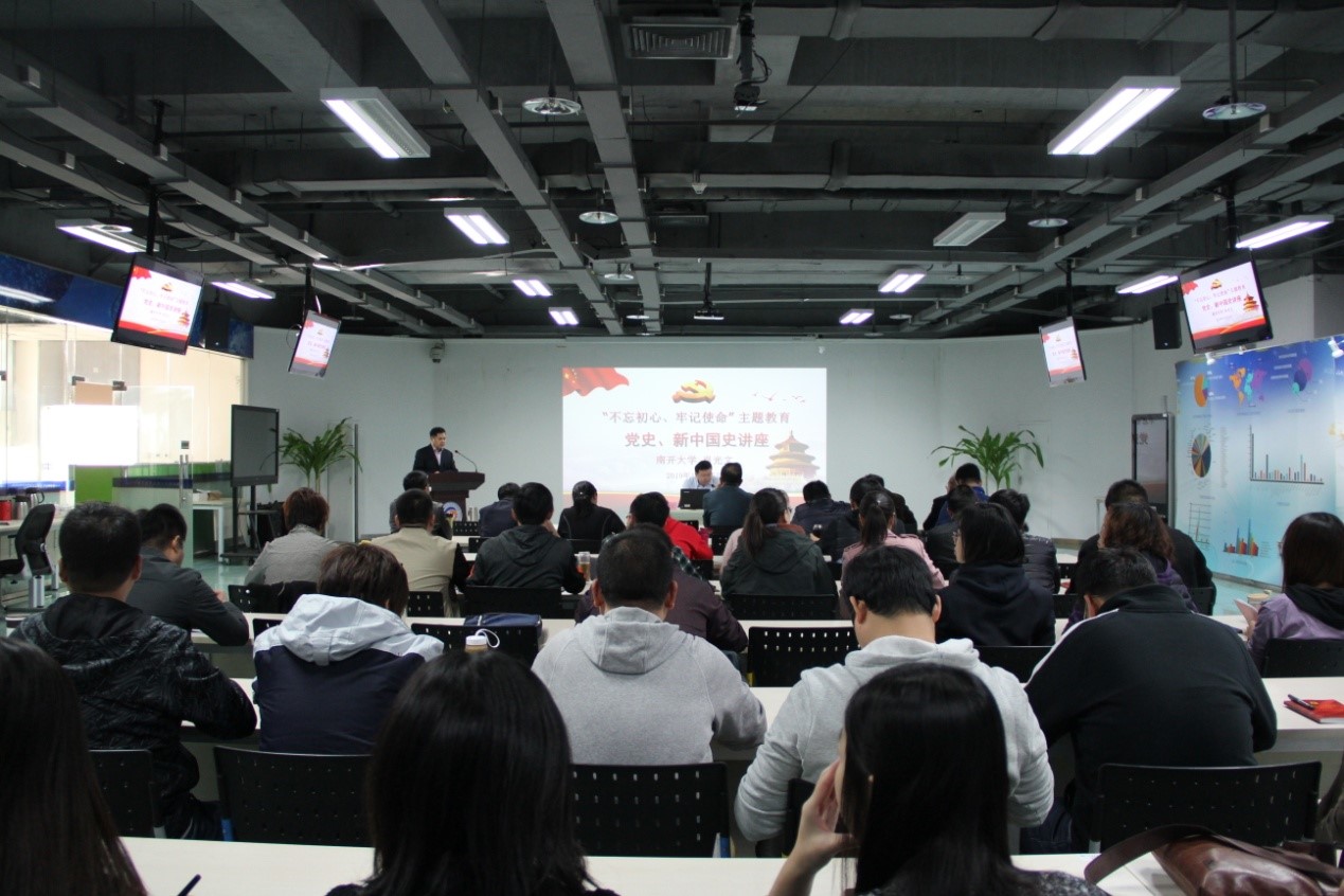 10月25日,我院组织开展“不忘初心、牢记使命”主题教育党史、新中国史革命传统教育活动,邀请南开大学党委宣传部副部长、校史研究室主任、马克思主义学院肖光文副教授作题为《学党史 守初心 践使命——纪念中国共产党成立98周年》的专题讲座。党委书记刘十洲,党委委员、副院长刘石英,副院长高翔,党委委员、纪委书记李洋,党委委员、创业学院院长张建勇,纪委副书记潘晓棣与各教工支部党员、入党积极分子、协同育人企业党支部党员代表一同聆听了讲座。市政协常委、无党派人士、副院长周晓丰参加活动。活动由副院长刘石英主持。