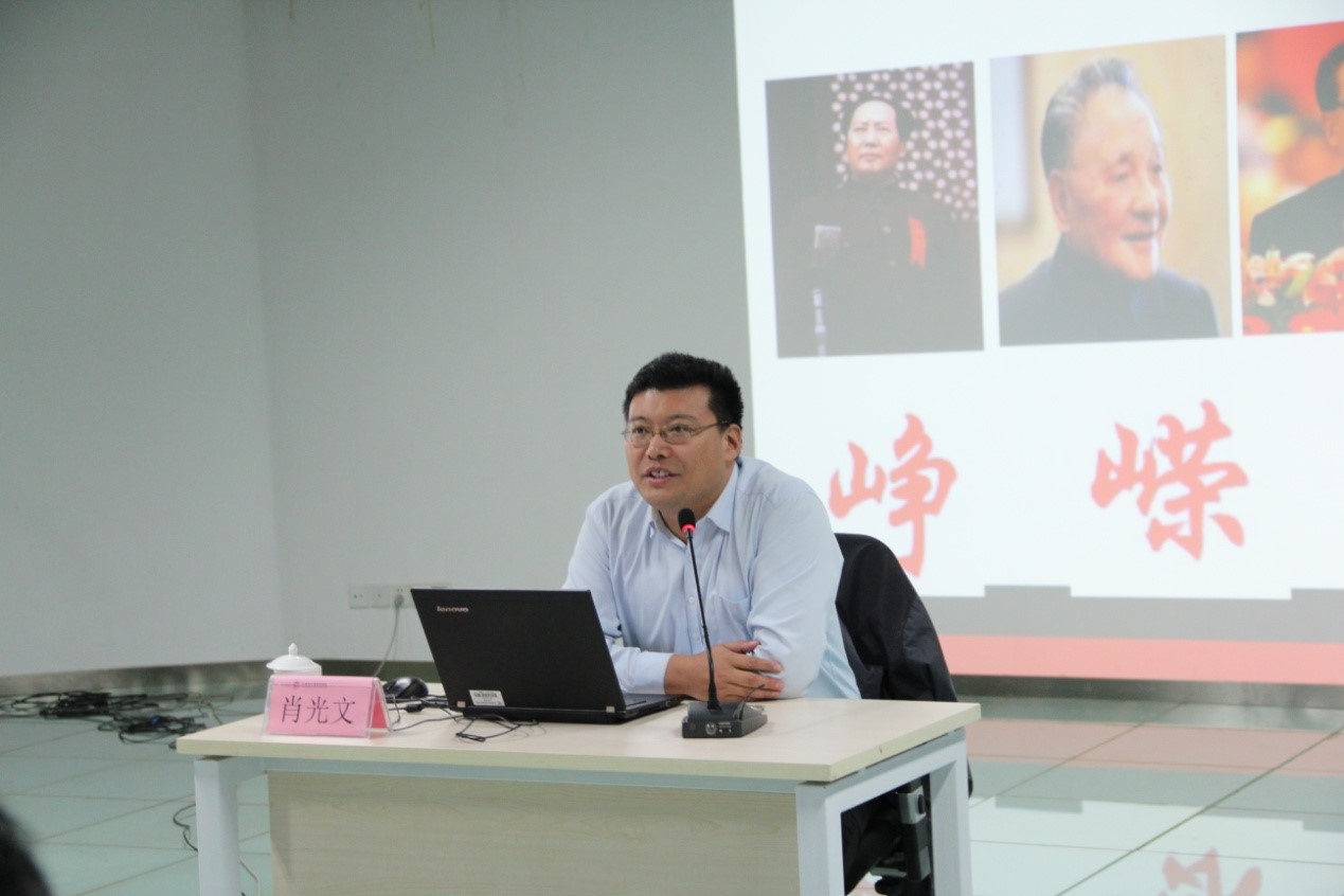 肖光文副教授首先带领大家认识了学习党史的重要意义。他指出,党的建设的经验、领导武装斗争的经验、执政的经验、搞社会主义建设的经验以及经受挫折失败的教训,都是我们宝贵的财富,学习党史既是一次把握规律、把握未来的理论学习,也是一次坚定信仰、坚定方向的党性教育。之后,他以“没有共产党就没有新中国”、“只有共产党才能发展中国”、“中国特色社会主义道路是中国必由之路” 三句话为引线,带领大家翻开历史画卷,回顾了中国共产党成立98年来波澜壮阔的发展历程。从新民主主义革命时期、社会主义革命和建设时期、改革开放和社会主义现代化建设新时期、中国特色社会主义进入新时代四个时期入手,为大家详细介绍了不同历史时期的重大历史事件,分析了党在新中国建立、发展的各个阶段所发挥的重要作用。肖副教授以丰富的案例、深入浅出的讲解,让与会人员受到了一次深刻的党性教育、思想教育,也更加明确了作为一名共产党人在新时代的使命担当。