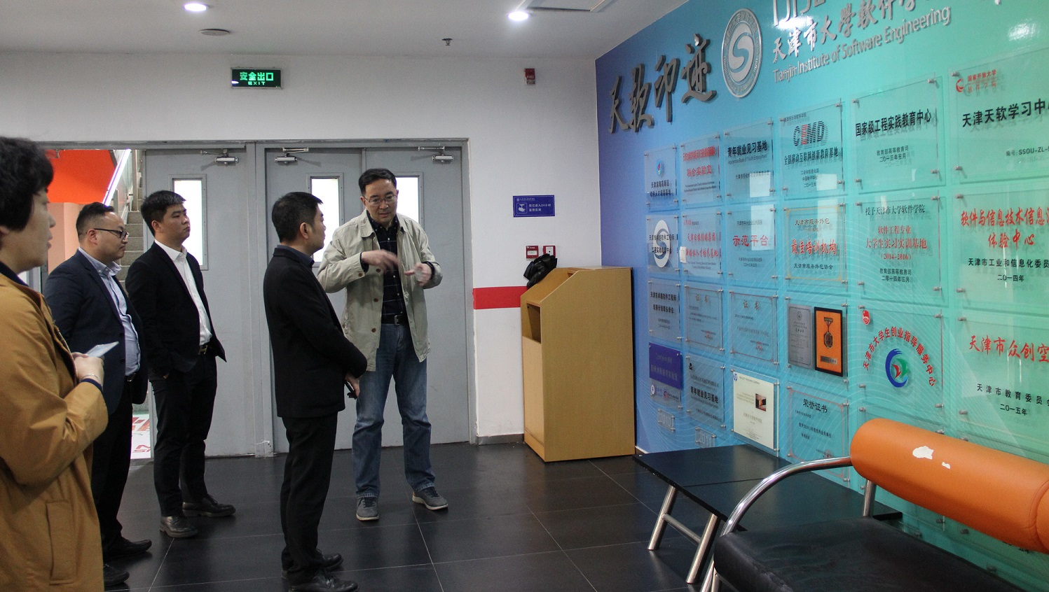 陈涛执行总裁等首先参观了合作共建的人工智能实验室以及四楼实训区和五楼天软·创魔方,详细了解了我院的办学模式、教学实训特色、校企合作机制、软硬件设施条件等情况,对在教学管理、人才培养方面的创新举措给予了肯定。