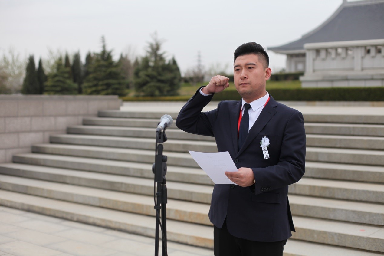 卓越第三分公司梁宇轩同学作为学生代表发言,他感慨道,今天的幸福生活是无数革命烈士用生命换来的,身为新时代的大学生应铭记英雄,继承发扬烈士们的爱国精神,为民族的复兴和祖国的建设贡献自己的力量。梁宇轩的发言道出了同学们的心声,引起了大家的强烈共鸣。在代表的带领下,全体同学在纪念碑下重温了入学誓词。