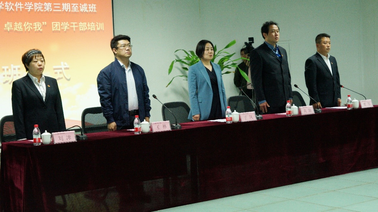 开班仪式上回荡着雄壮的团歌和激昂的誓言。团市委副书记王凤对学员及学院共青团工作提出三点要求:一是要旗帜鲜明讲政治,希望广大团干部要充分发挥思想引领作用,在广大青年中有效地传播党的思想主张,通过至诚班、青年学习社等平台,用心学习科学理论,深入思考交流研讨,不断增强自身的知识储备;二是要切实做好青年骨干的培养工作,在培养的过程中,坚持用习近平新时代中国特色社会主义思想教育武装青年骨干,不断增强青年骨干的政治觉悟及实践能力;三是希望广大团学干部在学院共青团工作中发挥生力军的作用,勇于担责、敢于负责,在不朽的青春中,做肩负时代使命、胸怀家国的未来栋梁,做又红又专、德才兼备、全面发展的中国特色社会主义合格建设者和可靠接班人。