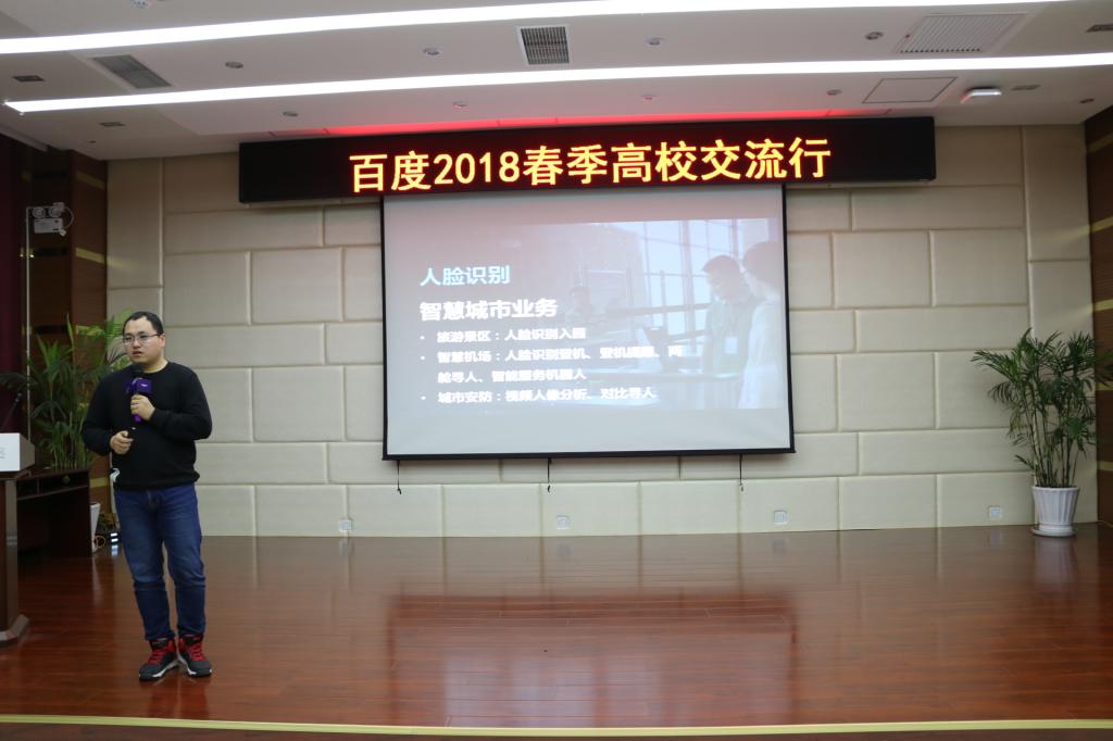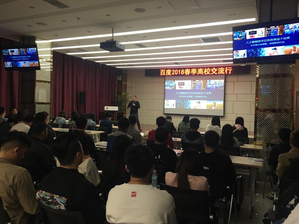 4月11日,百度2018年春季高校交流行暨实习生招聘活动在我院创业学院成功举行。这是百度首次来到我院进行专场招聘,宣讲会吸引了200多名同学到场聆听、交流。