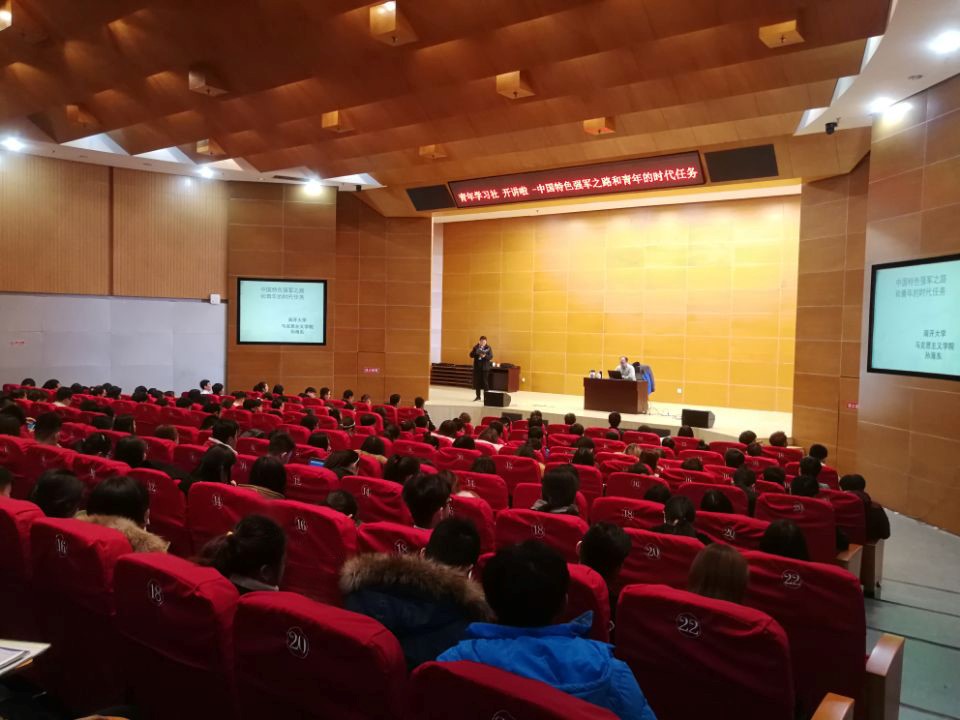 12月7日下午,“学习贯彻十九大”系列主题活动第四期开讲,青年学习社导师、南开大学马克思主义学院孙海东老师,以“中国特色强军之路和青年的时代任务”为主题,与200多名同学分享了他学习十九大报告的心得体会。学生工作部部长曹军主持活动。
