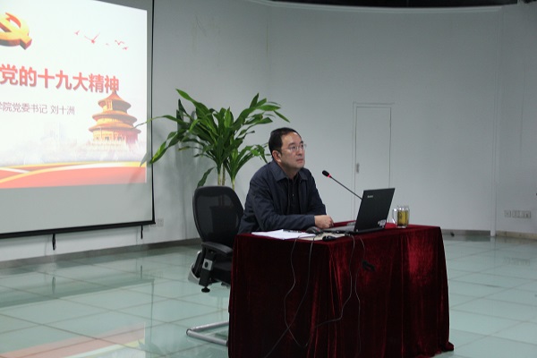 十洲书记首先从十九大报告的主题、会议取得的重要成果、体现的主要精神和历史意义三方面对十九大会议进行了概况总结,并指出学懂、弄通、做实党的十九大精神,最重要的是学习贯彻习近平新时代中国特色社会主义思想,这是十九大精神的灵魂,是把握十九大精神的“纲”,是做好一切工作的主线。