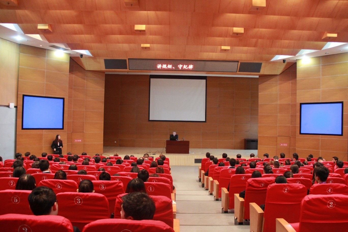 10月26日,学院纪委副书记潘晓棣以“讲规矩 守纪律”为主题,组织卓越第五分公司全体学生进行了学习。