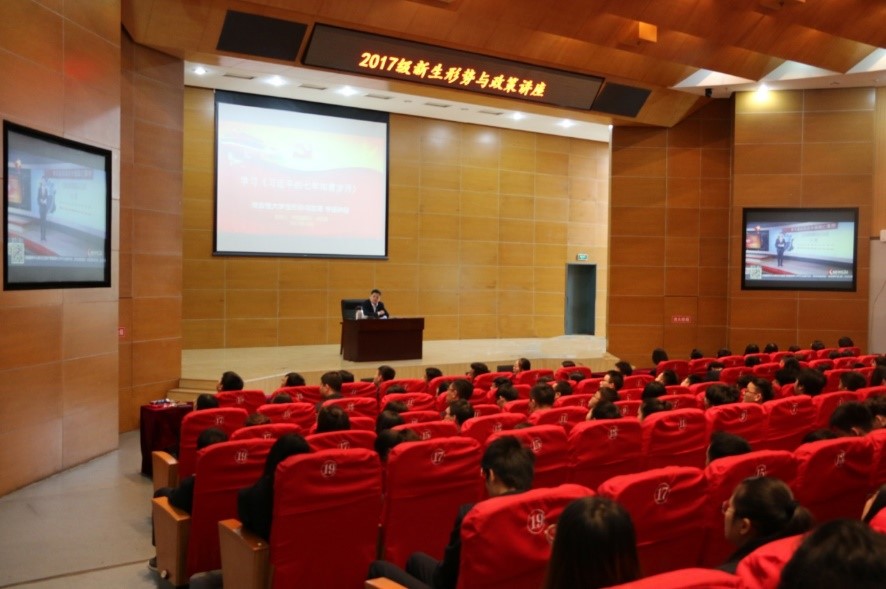 继新学期学院党委书记刘十洲为学生讲授“形势与政策”第一课起,2个多月来我院克服没有思政课专职教师的困难,坚持院分管领导上讲台,将形势与政策课作为做好思政工作的一项重要内容持续开展,以多元化的视角、紧密贴近学生的宣讲内容,先后为1000多名学生授课,引导大学生正确把握国内外形势新变化新特点。特别是十九大召开以来,学院领导带头进行十九大报告的宣讲,推进十九大精神走进校园、覆盖到每一名学生。