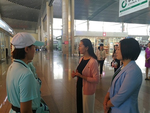 9月4日,共青团中央书记处书记尹冬梅来到天津站、天津南站,考察第十三届全运会抵离志愿者服务工作情况,并亲切看望、慰问我院抵离工作志愿者。团市委副书记王凤及相关主要负责同志陪同。