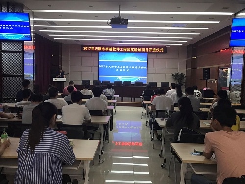8月14日下午,2017年天津市卓越软件工程师实验班开班仪式在中北天软创业学院举行。学院教务部部长刘军利、学生事务部副部长刘津、中北天软创业学院副院长牛广军,合作培养单位负责人、教务部相关老师及实验班学生参加开班仪式。