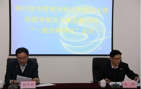 刘十洲书记主持会议,并代表班子做了2012年度班子工作总结和我院干部选拔任用报告,市委组织部宣教科技干部处副调研员王阳同志对测评表的具体填写事宜进行了说明。