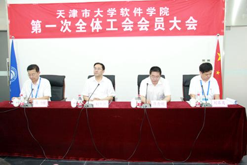 2012年7月18日,天津市大学软件学院工会召开了学院第一次工会全体会员大会。会议由潘晓棣副院长主持,学院领导班子成员及全体会员参加了大会。