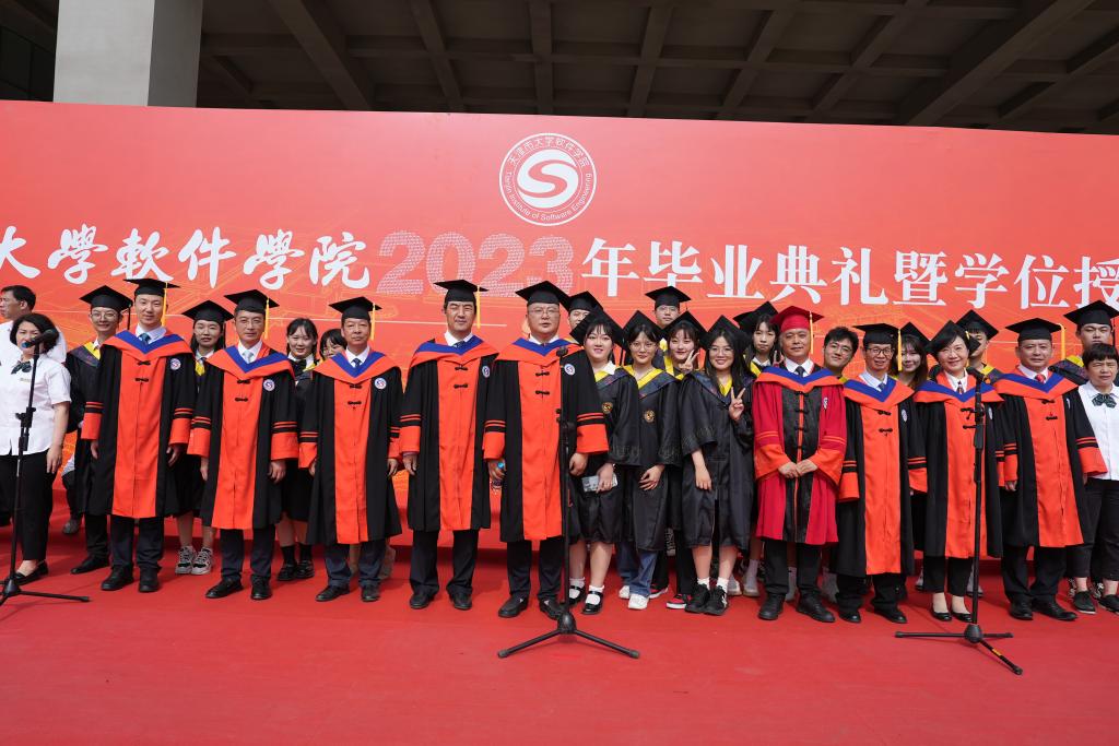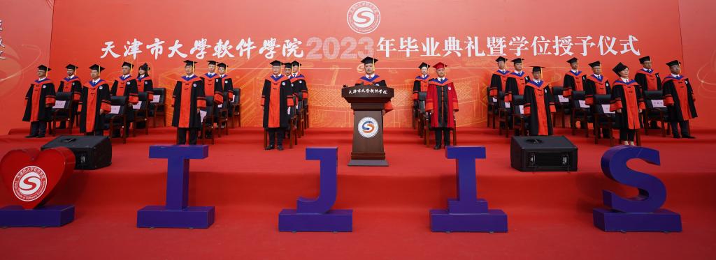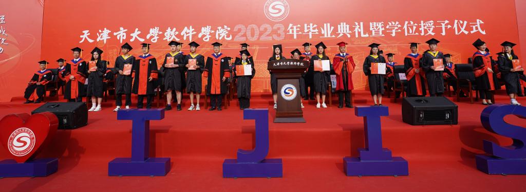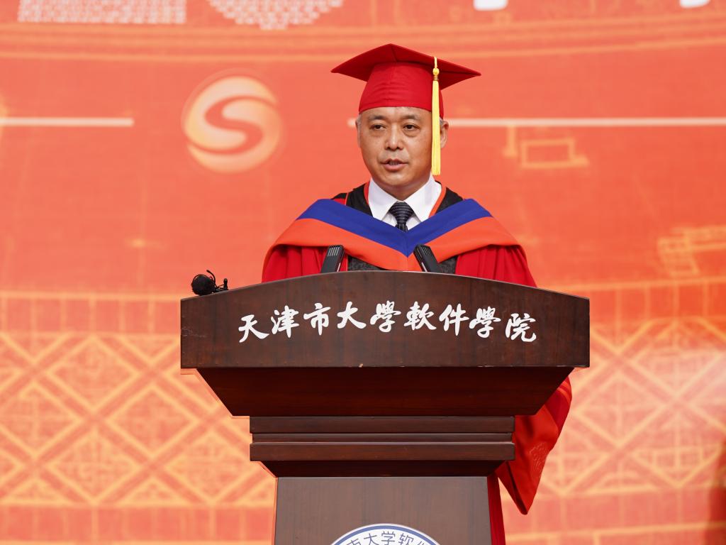盛夏时节,又闻骊歌。6月26日上午,天津市大学软件学院2023年毕业典礼暨学位授予仪式在学校卓越广场隆重举行。学校党委书记张爱华,校长张玉波,副校长徐俊清、张建勇,纪委书记张健维及各部门负责人、教师代表参加典礼。天津师范大学副校长佟德志,天津理工大学副校长陈胜勇,天津城建大学党委副书记王罡,天津职业技术师范大学副校长阎兵,天津软件行业协会会长、中国曙光股份副总裁杨波,学校首届教指委专家、汉邦高科总经理孙贞文,恒银科技执行总裁张云峰,浪潮天津副总经理胡焕钢,Tridium中国区总经理陈杰,卓朗科技副总经理张作宸,三人形思科技总经理胡思及部分家长代表、校友代表受邀出席,共同见证全体2023届毕业生的荣耀时刻。典礼由副校长张建勇主持。