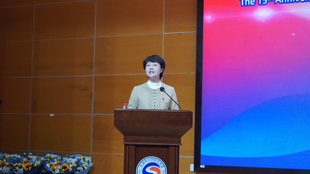 校企合作企业代表天津市融创软通科技股份有限公司负责人张林福在致辞中表示,十多年里,学校与企业在培养优秀人才、教学改革、思政课程建设等方面有深入合作。近年来依托天软的平台和资源,研发的大数据项目荣获天津市科技进步三等奖;并在2022年至2024年期间取得联合申报省部级以上课题5项、专利转化率达65%的佳绩。张林福表示,期待未来与天软有更深更广的合作,结出更多丰硕的成果。