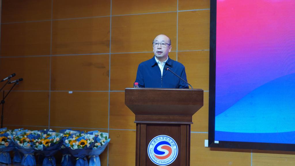 学校党委副书记、校长张玉波致辞。他感谢了市委市政府对天软发展的大力支持和取得成果的肯定,回顾了在市教育两委的指导下学校的发展历程。15年来,学校秉承“共建”基因,持续整合教育、科技、产业优势资源,建设以“共享资源、实习实训、创新创业、就业服务”为核心功能的资源集约共享平台,为党育人为国育才成果丰硕,累计培养输送各类高素质软件人才12万余名。协同育人优质资源汇集,率先在全国提出“教学与产业相融,学校与企业互动”的产学合作协同育人理念,并开创“引企入校”“引企入教”新机制,实现了人才培养供给侧和产业需求侧结构要素的全方位融合,为天津、京津冀乃至国家的信创产业发展注入强劲动力。