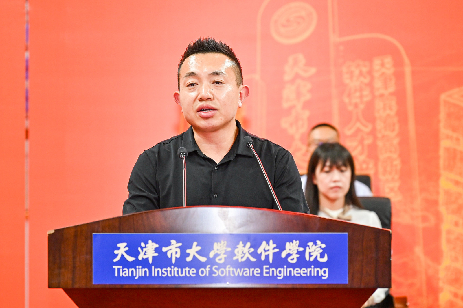 侯洁书记、张玉波校长等校领导为新生代表佩戴校徽。全场新生、校友郑重佩戴承载天软使命的校徽。熠熠闪光的校徽既是“天软学子”的象征,更是“至诚致力,卓异卓越”的精神传承。将校徽戴于胸前,从此将校训铭记于心,把青春融入党和人民事业,以青春奋斗书写属于新时代的壮丽篇章。