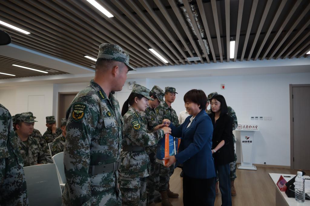 慰问活动在温馨融洽的氛围中展开。刘军利为国防教育教练员发放慰问品,感谢大家连日来以专业素养扛起带训重任,用汗水为新生国防教育筑牢根基。她充分肯定了教练员们在国防教育任务中的表现,感谢他们为国防教育事业付出的努力,并鼓励大家继续发扬优良作风,继续努力完成国防教育任务。同时,她强调此次带训是两校国防教育合作的重要实践,既是对退役大学生士兵能力的肯定,也为校际国防教育协作积累了宝贵经验,希望教练员们始终以高标准严要求投入工作,展现天软退役大学生士兵的过硬素质。