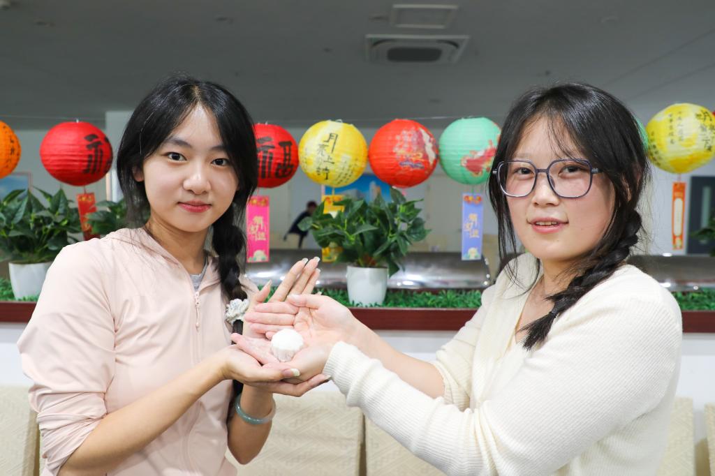 香甜弥漫间,“中秋习俗体验·猜灯谜”环节登场。写有国庆、中秋主题谜题,以及巧妙融入校史、软件专业趣味知识的灯谜纸条悬挂在缤纷的装饰下,吸引大家驻足凝思。或独自思索,或团队协作,智慧的火花不断碰撞。传统民俗与专业特色的创意结合,既考验智慧、传播文化知识,也增强了爱校荣校教育。
