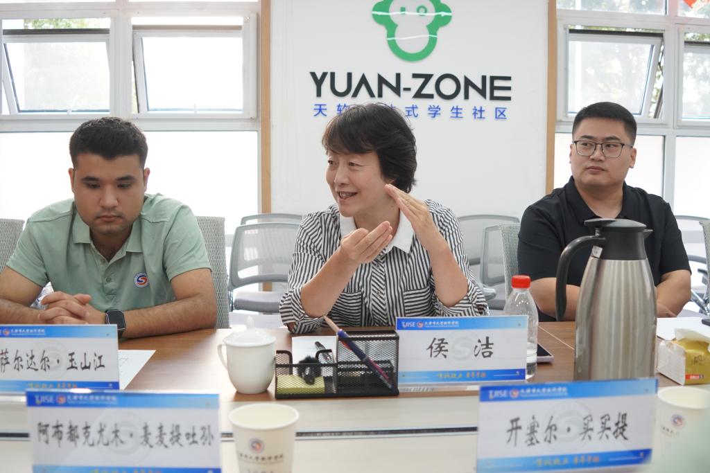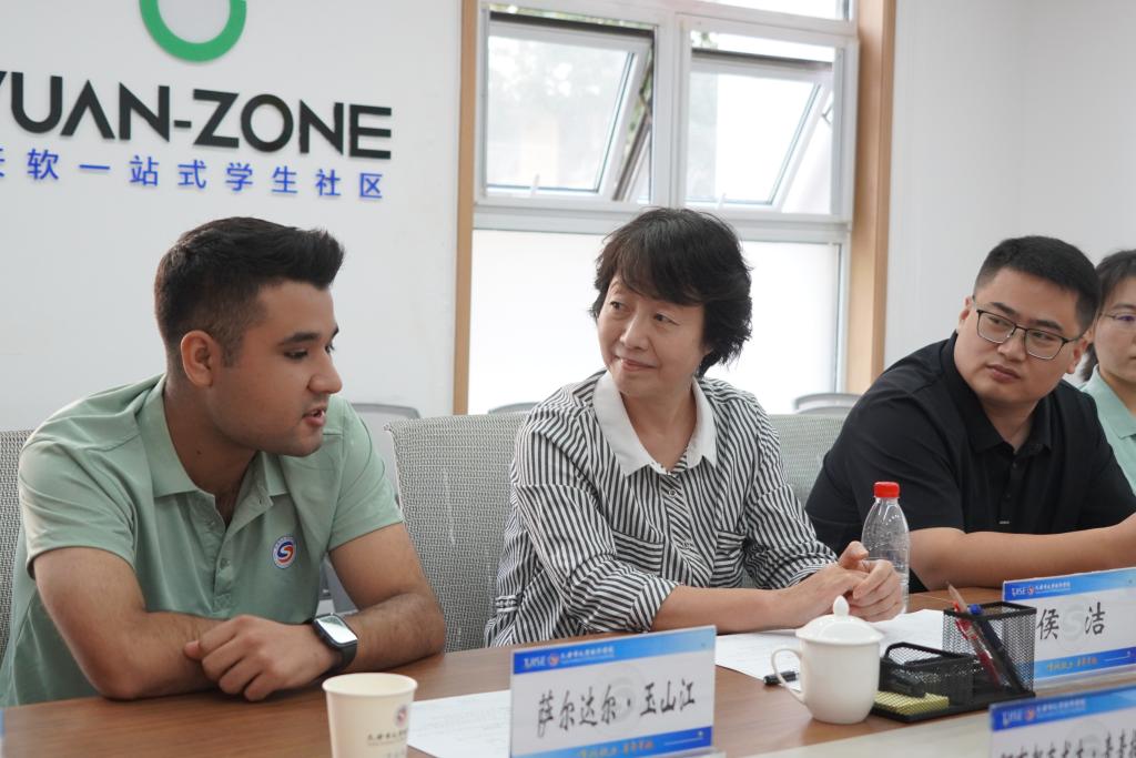 在“心声交流:我在天软的成长与展望”环节,学生代表们结合自身经历畅所欲言,分享在校园的点点滴滴。维吾尔族学生萨尔达尔·玉山江讲述了自己从初入校园时的懵懂,到在老师同学帮助下适应学习生活、积极参与校园活动的转变,“学校的少数民族学生帮扶政策让我感受到家的温暖,今后我想努力学好专业知识,毕业后为家乡发展贡献力量”。