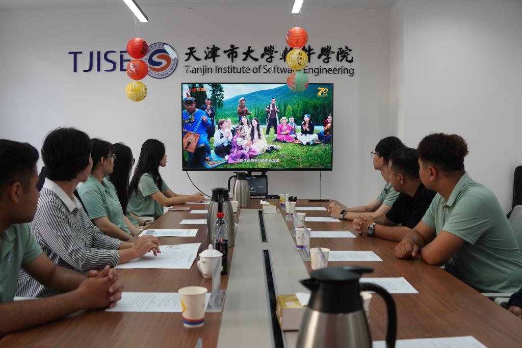 会议伊始,全体参会人员共同观看庆祝新疆维吾尔自治区成立70周年主题宣传片《我们的新疆》。荧幕上,新疆的壮美风光与各族群众团结奋斗的画面徐徐展开,从大漠戈壁的雄浑到绿洲田园的生机,从传统民俗的传承到现代发展的活力,生动展现了新疆70年来在经济、文化、民生等领域的跨越式发展,更让在场师生深刻感受到“各民族像石榴籽一样紧紧抱在一起”的深厚情谊,为座谈会奠定了浓厚的民族团结氛围。