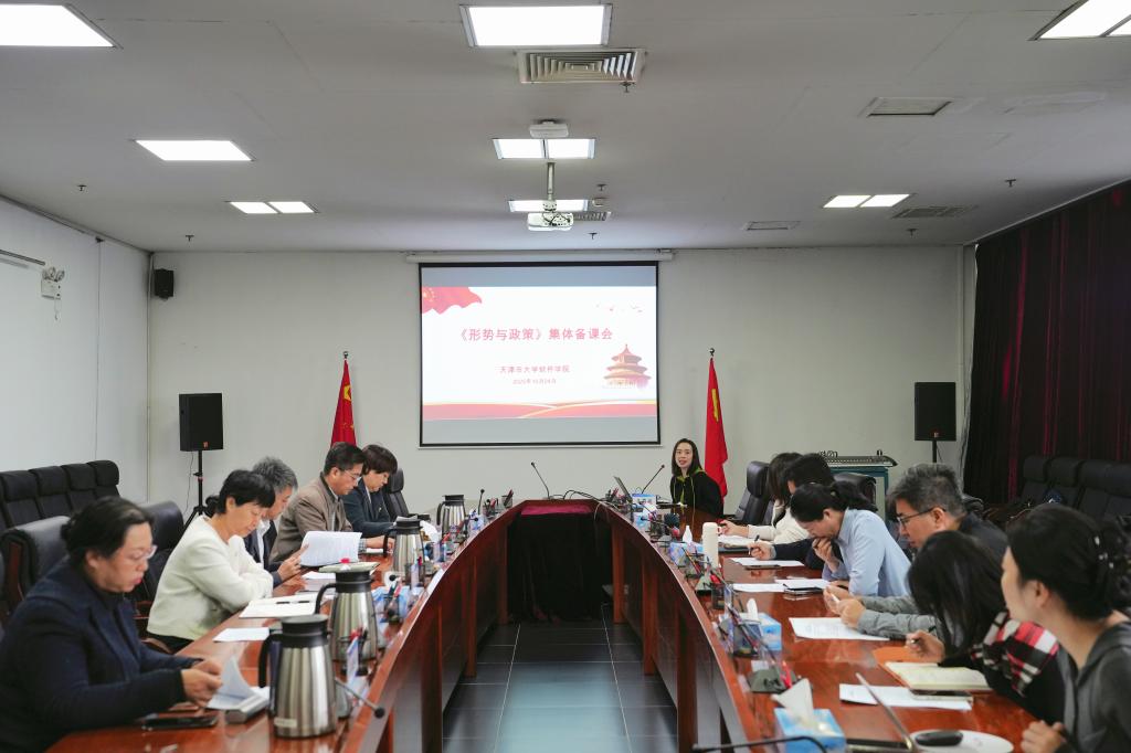 会上,课程组长高莉娟老师对本学期教学计划进行详细介绍,就教学专题选取、成绩构成、课件制作等进行了说明。随后以“上海合作组织天津峰会”为切入点,以“践行多边主义,完善全球治理”为题,围绕变乱交织的国际形势、全球治理的国际共识、时代之问的中国答卷三个方面对课程核心内容进行系统梳理与深度解读,为后续教学开展提供了扎实的内容支撑。