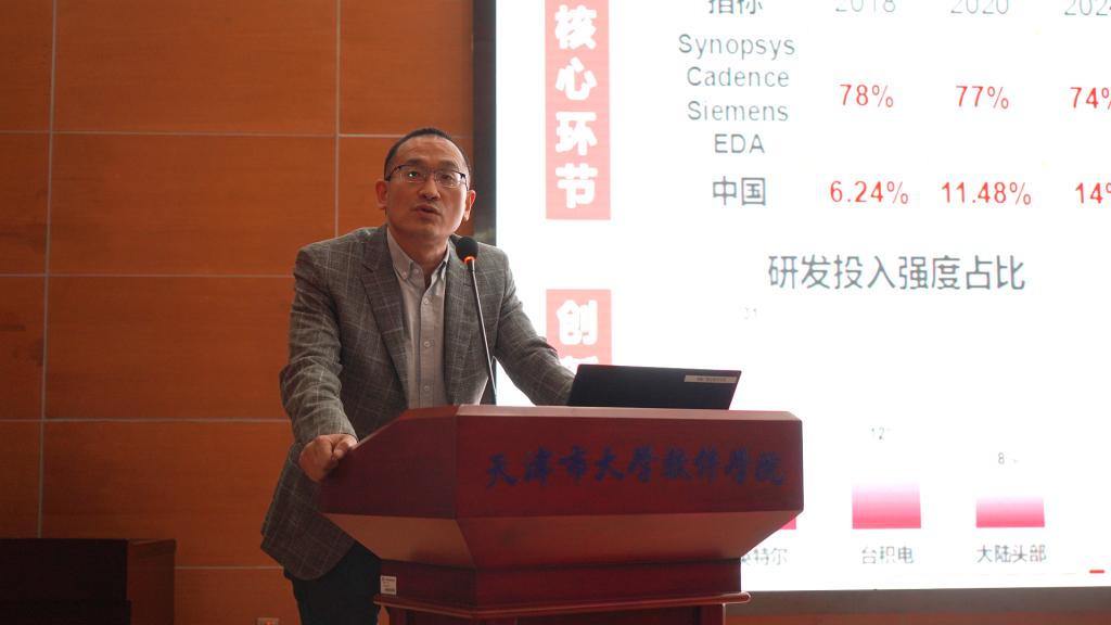 11月27日下午,我校首席科学家杨嘉琛教授以《“跟跑”“并跑”“领跑”》为题,为天软师生作了学习贯彻党的二十届四中全会精神辅导报告。领导班子成员,全体教职工、协同育人企业代表及学生代表200余人现场聆听,讲座由党委副书记张建勇主持。