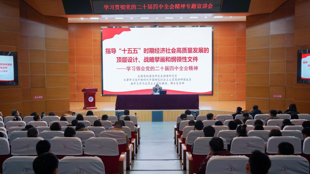 为深入学习贯彻党的二十届四中全会精神,我校连续举行两场学习辅导报告会。校领导班子成员,中层领导干部、全体教职员工、协同育人企业代表及学生党员代表参加。报告会分别由副校长徐俊清、纪委书记赵立志主持。