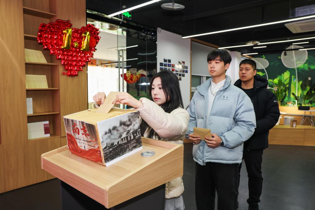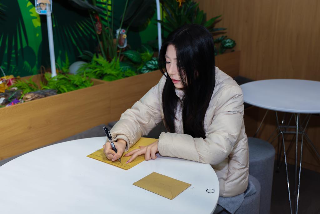 书写完毕,他将信郑重装入信封,投入“时空信箱”,象征寄往远方逝去的同胞或者英烈。“当信件落入箱中的那一刻,仿佛完成了一次真诚的倾诉。这是对逝者的告慰,是一次对内心的叩问与鞭策,让我更清晰地感受到肩上的责任。”他感慨道。