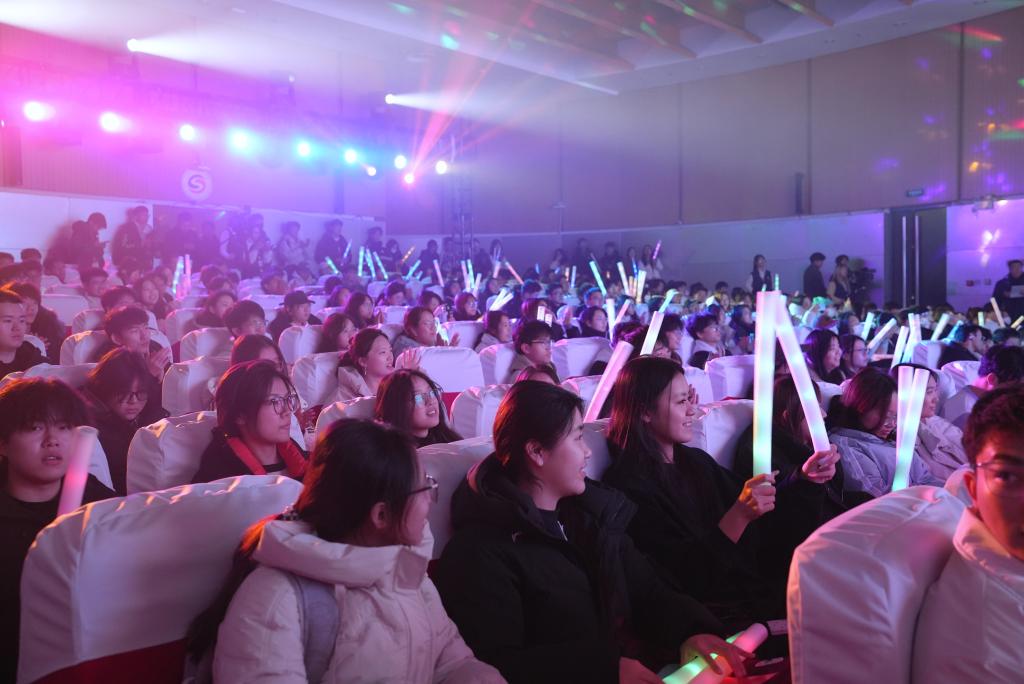 “如果命运彼此交换,我们是否还能依然……”歌曲《交换余生》合唱响起时,台下星光悄然点亮——同学们自发举起手机闪光灯,点点微光化成温柔星海。这是无需言说的默契,这是青春的动人和弦。