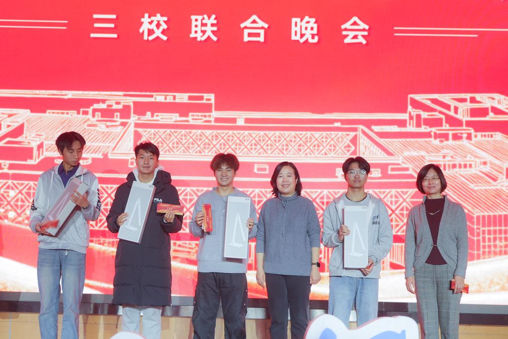 我校党委书记侯洁、党委副书记张建勇,天津工业大学计算机科学与技术学院党委书记楼稚明、党委副书记田旭,天津工业大学软件学院党委书记郭翠娟,天津理工大学华信软件学院院长孟繁静、副院长朱利清,天津工业大学人工智能学院学工办主任李浩、李晶老师,天津工业大学航空航天学院孙悦老师,三校学生代表共240余人出席晚会。