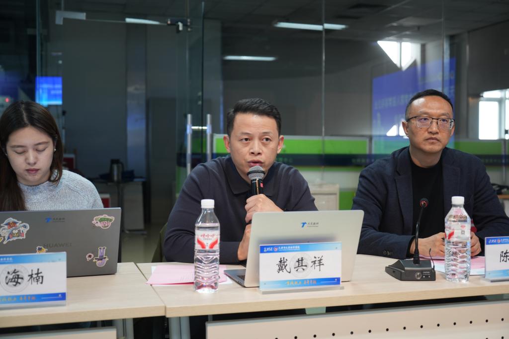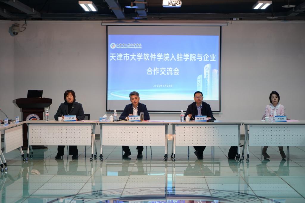 为有效整合高校教育资源与企业产业优势,天津市大学软件学院于2026年1月28日下午举办入驻学院与企业合作交流会。市教委科研处处长杨明海、副处长王媛媛,天津市大学软件学院校长张玉波,副校长刘军利出席会议,天津工业大学计算机科学与技术学院、软件学院、航空航天学院、人工智能学院相关领导及教师代表,天津交通数字科技有限公司、天津水泥工业设计研究院有限公司、中汽数据(天津)有限公司等合作企业代表参会。会议由我校创新创业学院主要负责人主持。