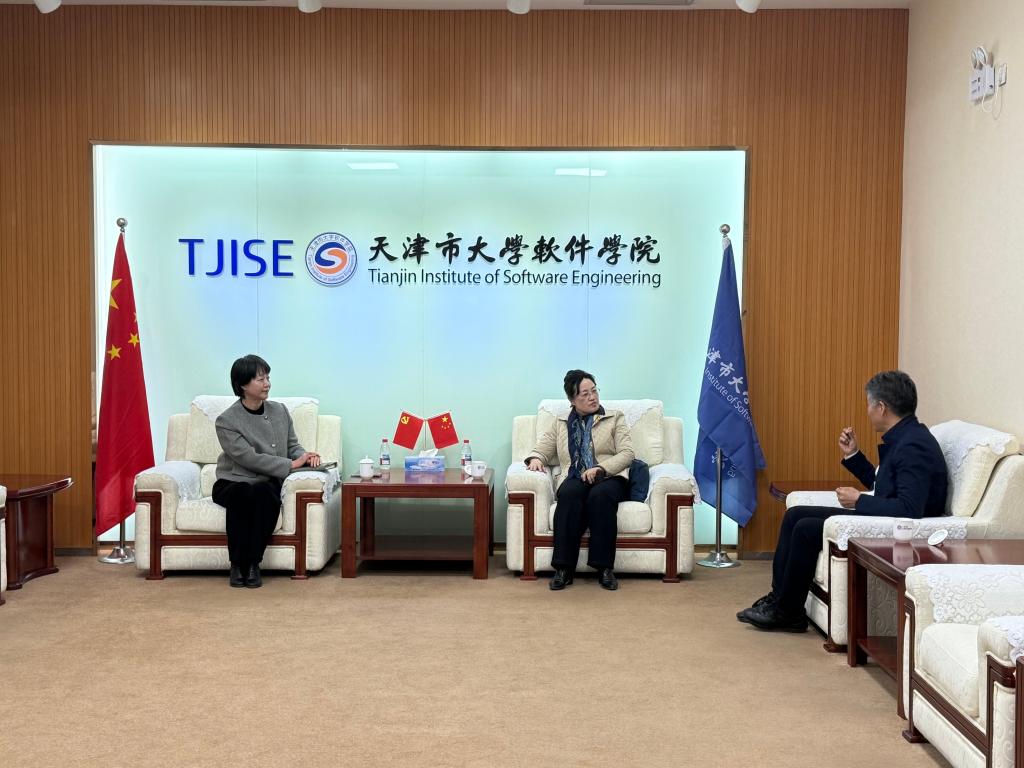 侯洁代表学校对郭滇华到访表示热烈欢迎,向天津工业大学长期以来给予我校的大力支持表示衷心感谢。她希望进一步发挥学校平台作用,与天津工业大学进一步加强交流,在软件人才培养、校企深度融合等方面深化合作。