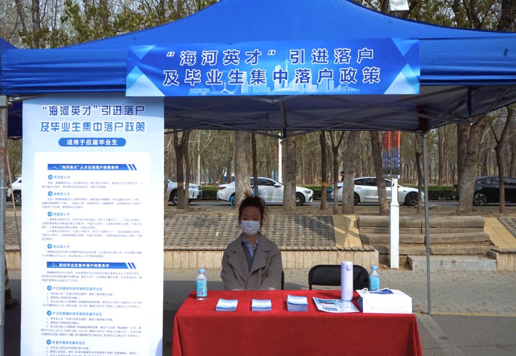 我校联合中国北方人才市场的专业政策解读人员、资深就业指导老师组建专属服务团队,设立天津市海河英才政策宣讲区,为毕业生提供全维度就业帮扶服务。同日在第三阶梯教室开展天津“海河英才”落户政策专题宣讲。