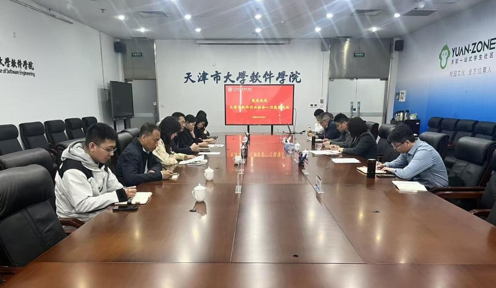 为进一步深化教育链、产业链深度融合,推进软件行业人才培养、产教融合、行业服务等重点工作落地见效,4月16日,天津市大学软件学院与天津市软件行业协会工作专题研讨会顺利召开。天津市软件行业协会秘书长王森、副秘书长李云芝、庞晓彤及各部门负责人,我校副校长刘军利,教务部、学工部负责同志及相关教师代表参会。