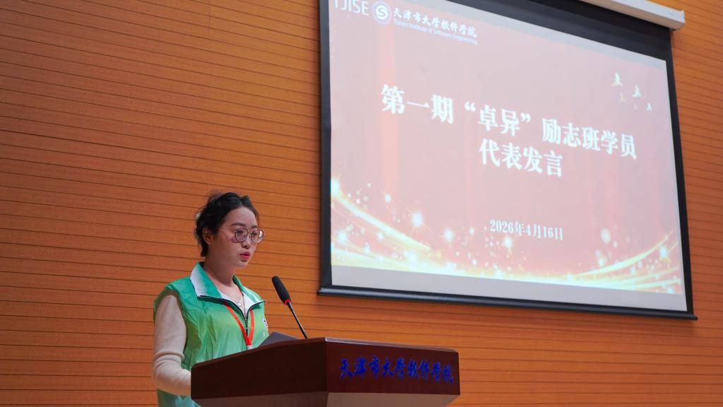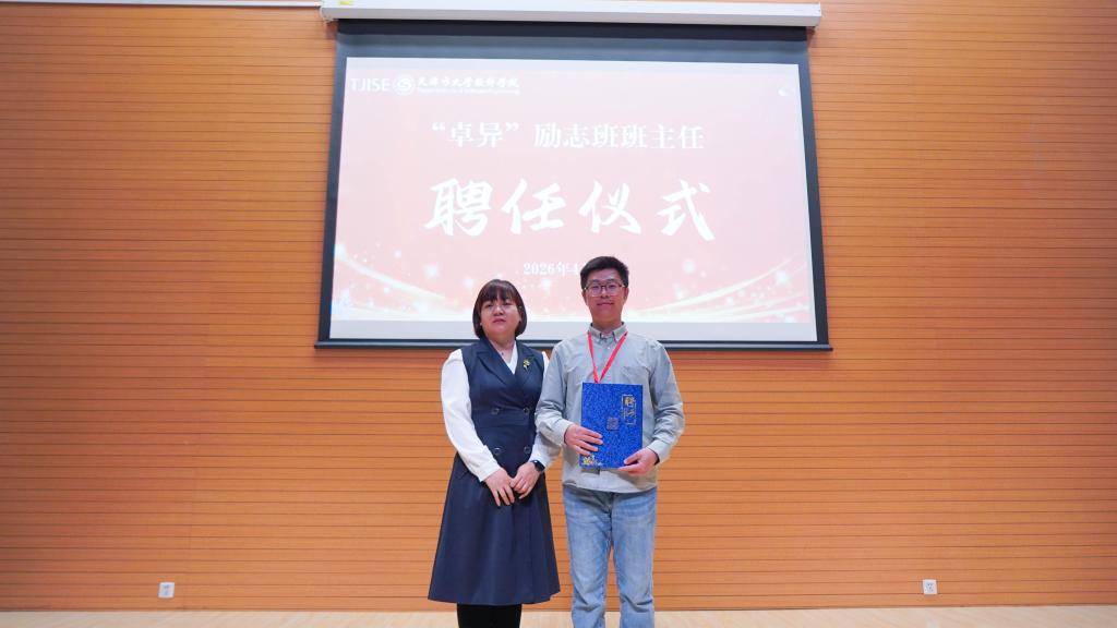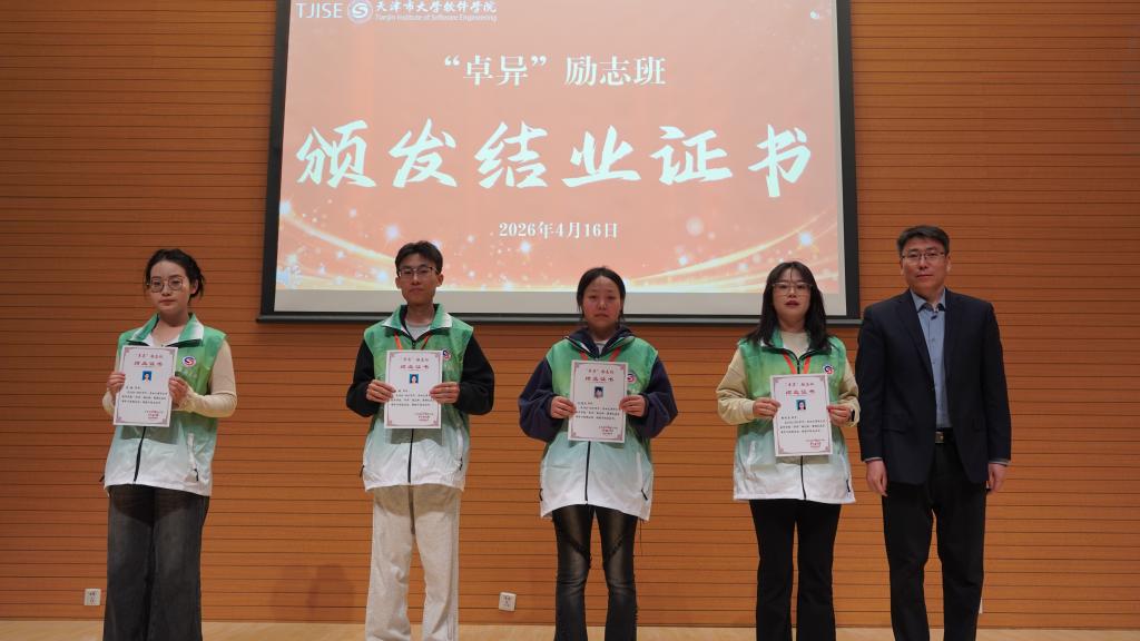 学生工作部负责人介绍,“卓异”励志班是学校落实发展型资助育人理念的重要平台,通过“经济保障+能力提升+价值观塑造”闭环培养,助力学员实现从受助到自助、从自助到助人的成长跨越。过去一年,第一期22名学员奋勇争先,斩获国家励志奖学金、院长奖学金等多项荣誉,1人获天津市自信自强年度人物提名奖,7人成功拿到就业offer,交出了优异的成长答卷。随后,学工部主要负责同志为第一期学员代表颁发结业证书。