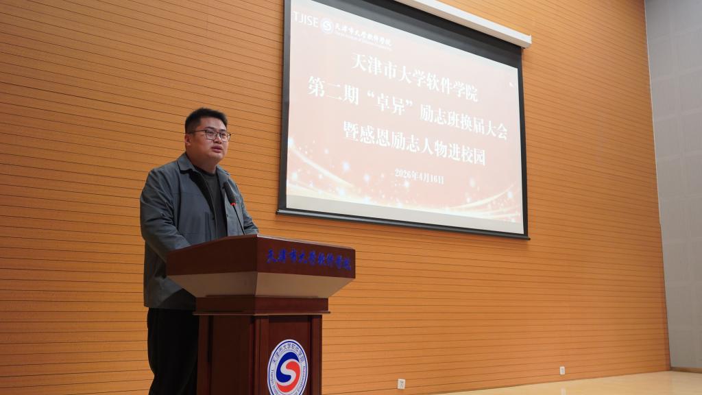 刘军利在讲话中祝贺第一期学员顺利结业,同时对第二期学员表示诚挚欢迎。她指出,“卓异” 励志班是学校资助育人、立德树人的重要阵地,换届不是简单的职务交替,而是责任的传递、精神的延续。她向全体学员提出三点希望:一是坚守初心,做励志精神的传承者,牢记学校“四维育人”培养理念,传承脚踏实地、奋勇拼搏的奋斗精神,以榜样力量带动更多同学共同进步;二是勇于担当,做集体建设的实干者,强化服务意识,发挥示范引领作用,结合学校“六大实训计划”搭建实践平台,营造团结奋进的集体氛围;三是锐意进取,做时代使命的践行者,紧跟数字技术与软件产业发展浪潮,将个人成长融入学校发展、行业进步与国家战略,以过硬本领迎接时代挑战,书写青春华章。