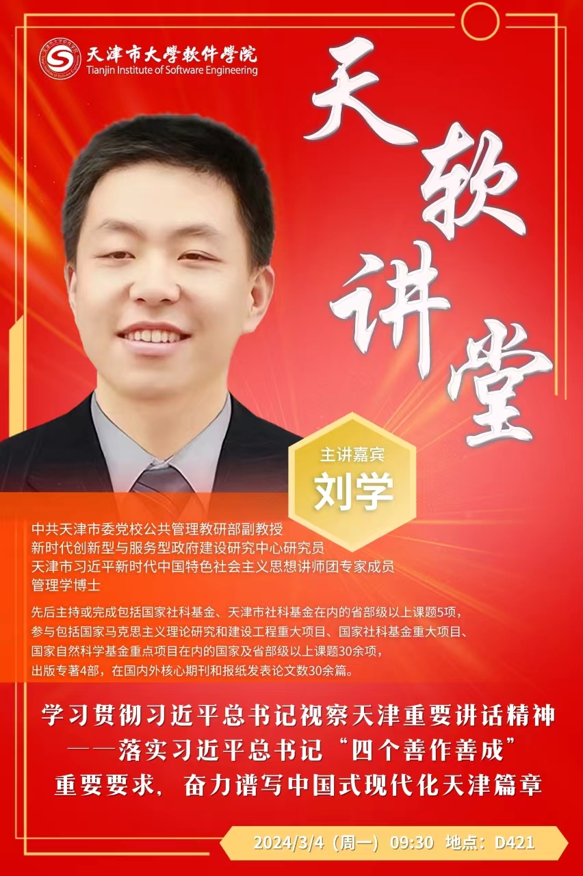 【天软讲堂】学习贯彻习近平总书记视察天津重要讲话精神——落实习近平总书记“四个善作善成”重要要求,奋力谱写中国式现代化天津篇章