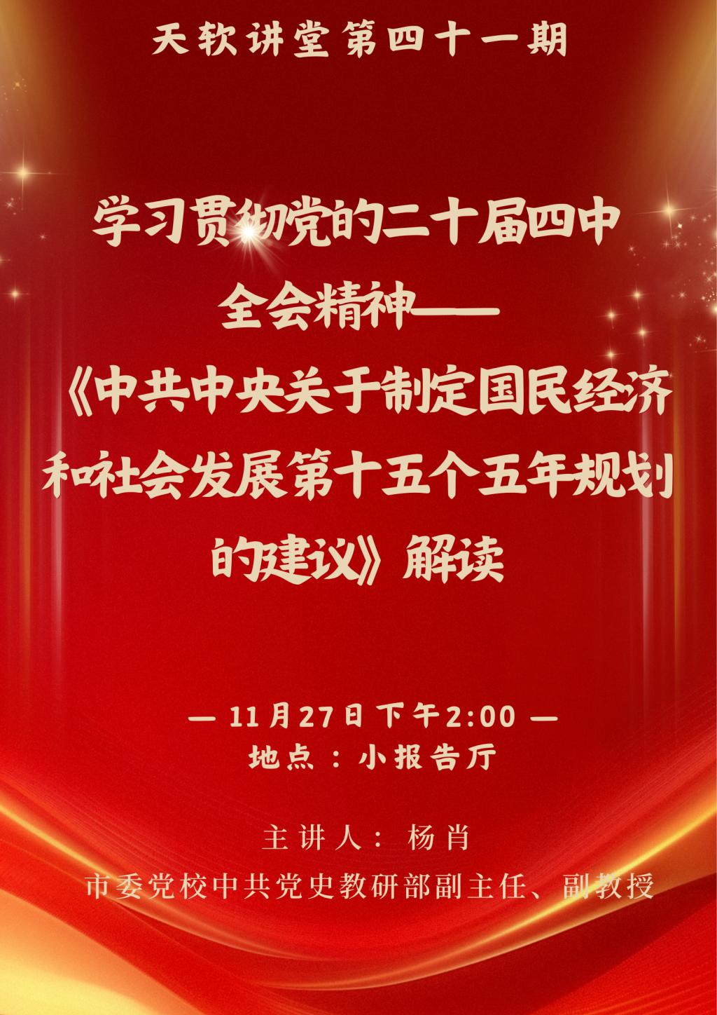 【天软讲堂】第四十一讲——学习贯彻党的二十届四中全会精神——《中共中央关于制定国民经济和社会发展第十五个五年规划的建议》解读