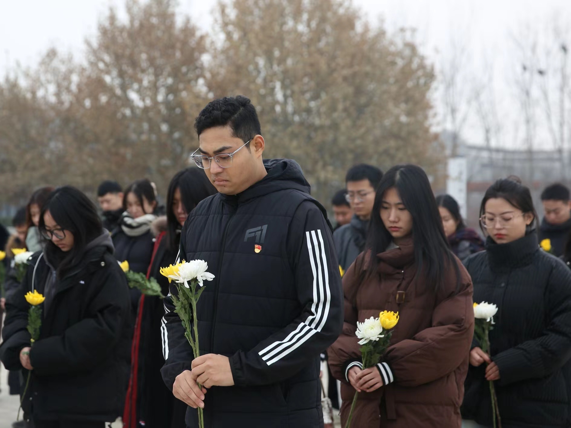活动伊始,全体师生在纪念碑前悼念缅怀英烈和死难者。在庄严的国歌声中,全体人员在纪念碑前肃立、默哀。