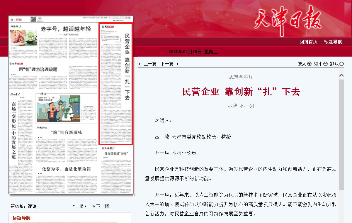 2025年4月16日,天津日报第9版以《民营企业 靠创新“扎”下去》为题对我校进行了报道。