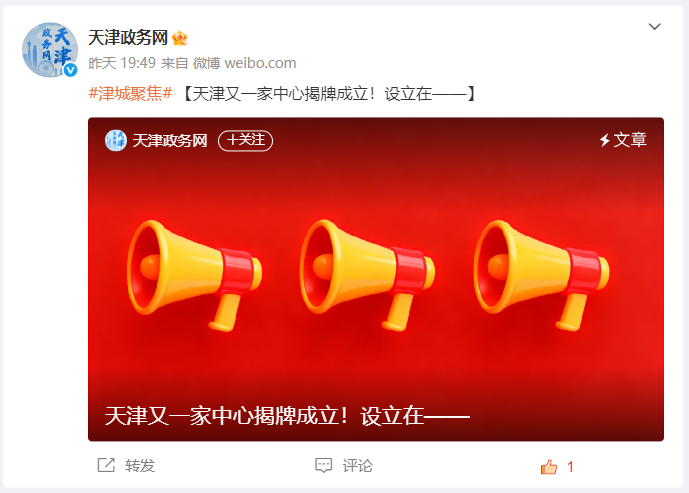 2025年10月28日,天津政务网微博以《天津又一家中心揭牌成立!》为题对我校进行了报道。
