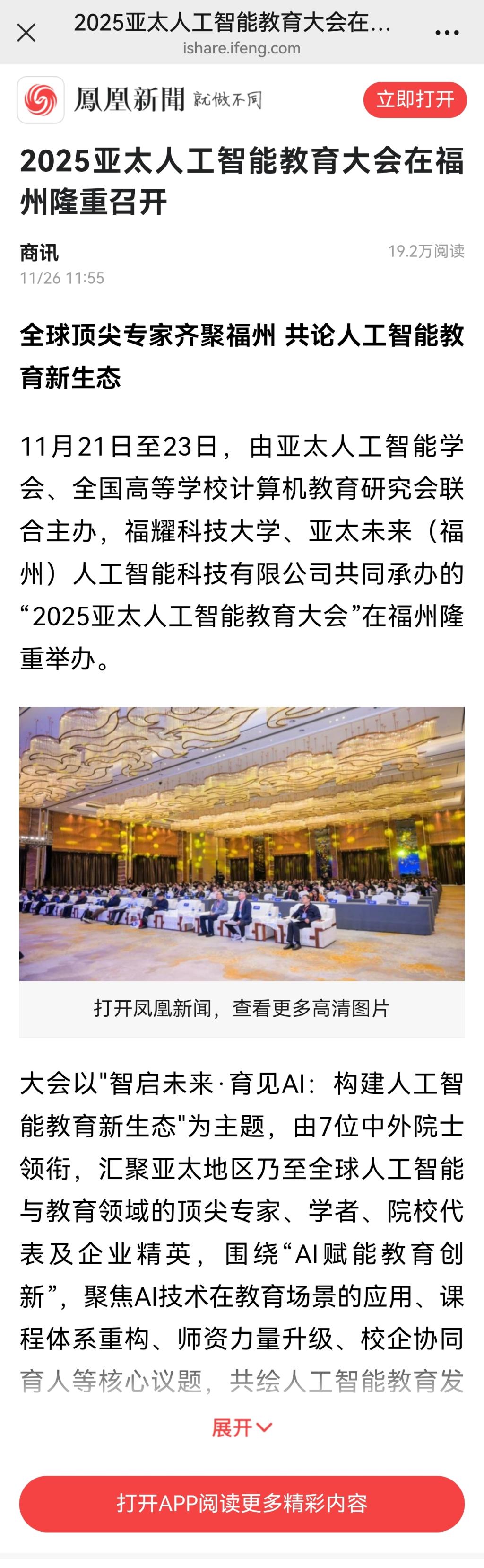 2025年11月26日,“凤凰新闻”以《2025亚太人工智能教育大会在福州隆重召开》为题对我校进行了报道。