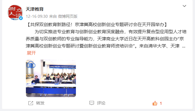 12月5日下午,我校党委副书记张建勇受邀参加京津冀高校创新创业专题研讨暨创新创业教育师资培训会,并作题为《混沌启元:从-1到1的问道寻途——十步问道空中课堂百期凝萃》的报告。2025年12月16日,天津教育微博以《共探双创教育新路径!京津冀高校创新创业专题研讨会在天开园举办》为题进行了报道。