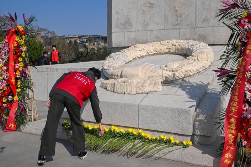 活动现场,全体人员在庄严肃穆的氛围中整齐列队。西青区退役军人事务局负责人缅怀致辞,天软学工部负责人宣读“京津冀”清明祭英烈倡议书。随后,全体退役军人向英雄先烈敬献鲜花。